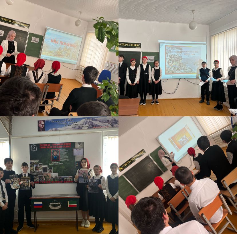 Во взаимодействии с отделом УФСБ России по Чеченской Республикие в Ножай - Юртовском районе 15 февраля 2025 года в МБОУ "ООШ с.Бильты им.Марзбекова К.М." провели мероприятия по следующим темам "Участник СВО - герой нашего времени!". "Афганистан-память и боль". Беседа о Войне " вторая мировая война" Ответственная за мероприятия учитель истории Масуева Аминат Джабраиловна